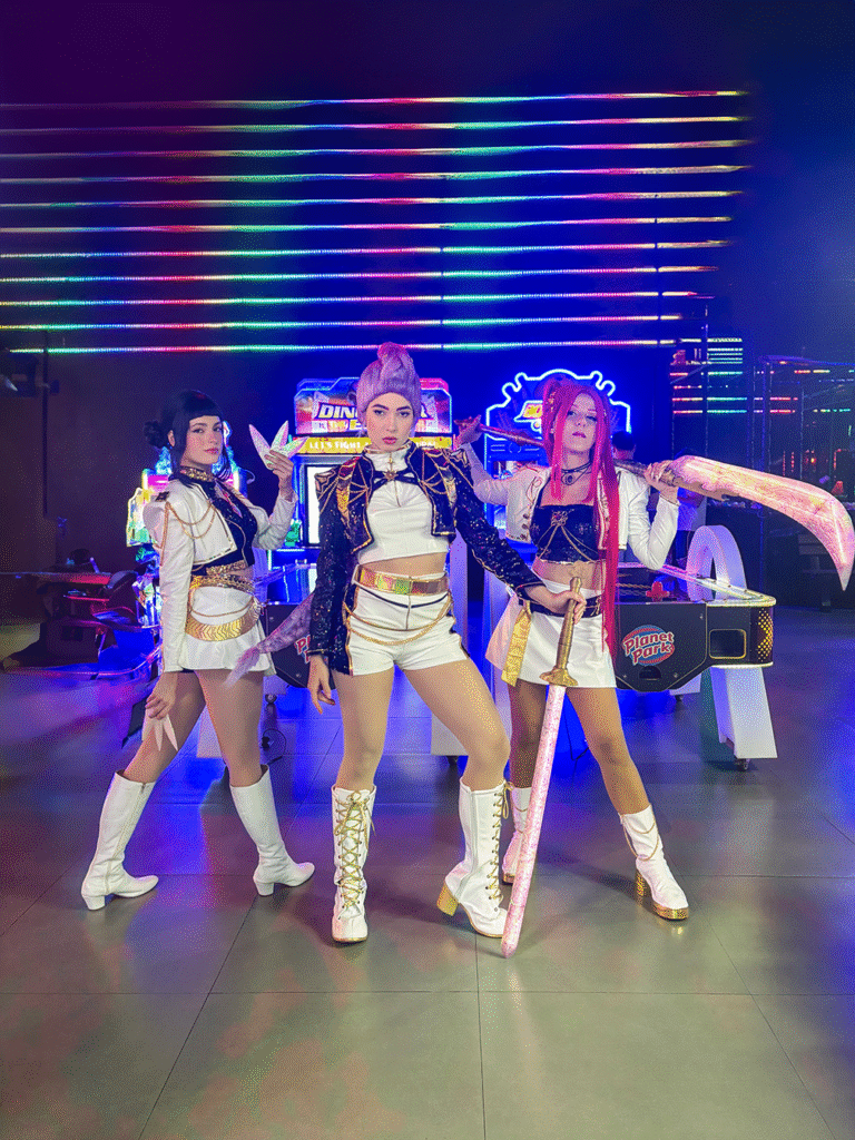 O grupo “Guerreiras K-Pop Cover” subirá ao palco, às 16h. A trupe de Fortaleza, que percorre o Brasil apresentando o universo do K-pop, apresenta a trama fantástica de Rumi, Mira e Zoey, as Huntrix — três garotas com vozes mágicas que usam a música para proteger a humanidade e enfrentar os Saja Boys, uma boyband formada por monstros disfarçados. Entre lutas coreografadas, figurinos marcantes, humor e canções dançantes, o espetáculo celebra a força da amizade e da união.