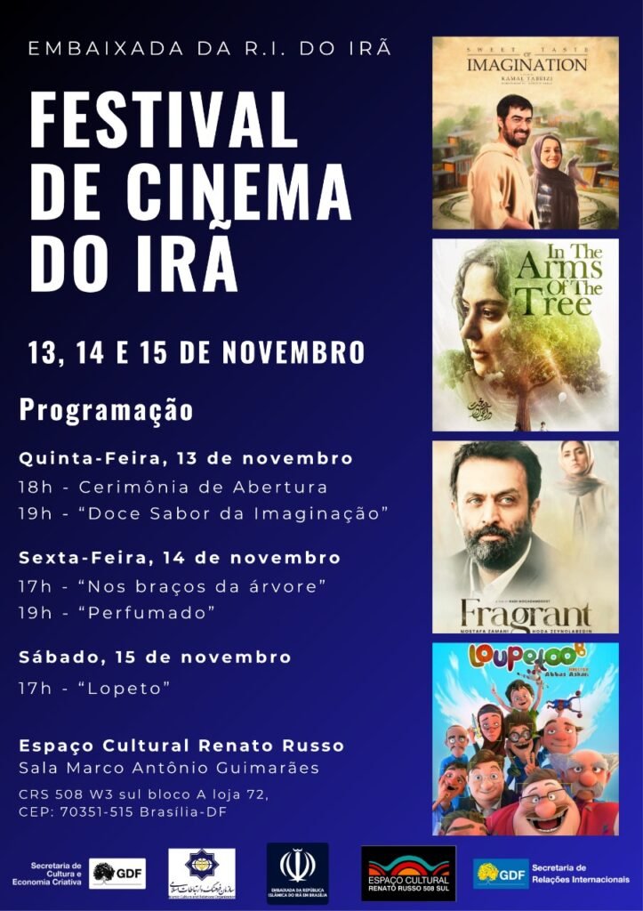 Nos dias 13, 14 e 15 de novembro, Brasília será palco de um evento cultural que promete aproximar o público da sensibilidade e da criatividade do cinema iraniano. O Festival de Cinema do Irã acontece na Sala Marco Antônio Guimarães, no Espaço Cultural Renato Russo (508 Sul), em parceria com a Secretaria de Relações Internacionais do GDF (Serinter) e a Secretaria de Cultura e Economia Criativa do GDF.