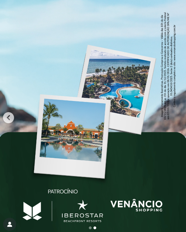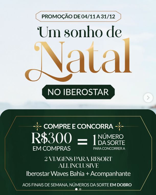 O Venâncio Shopping apresenta sua campanha de fim de ano com o tema “Um Sonho de Natal no Iberostar”, trazendo a promessa de transformar compras natalinas em experiências inesquecíveis. Entre 4 de novembro e 31 de dezembro, cada R$ 300 em compras garante ao cliente um número da sorte para concorrer a duas viagens com acompanhante para o Iberostar Waves Bahia, resort all inclusive à beira-mar.