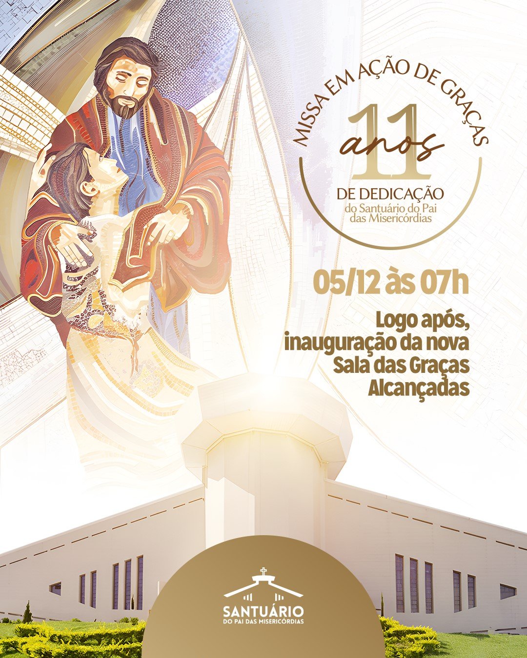 Na data que marca os 11 anos de Dedicação do Santuário do Pai das Misericórdias, 5 de dezembro de 2025, será inaugurada a nova “Sala das Graças Alcançadas”, que fica em um espaço anexo ao templo.