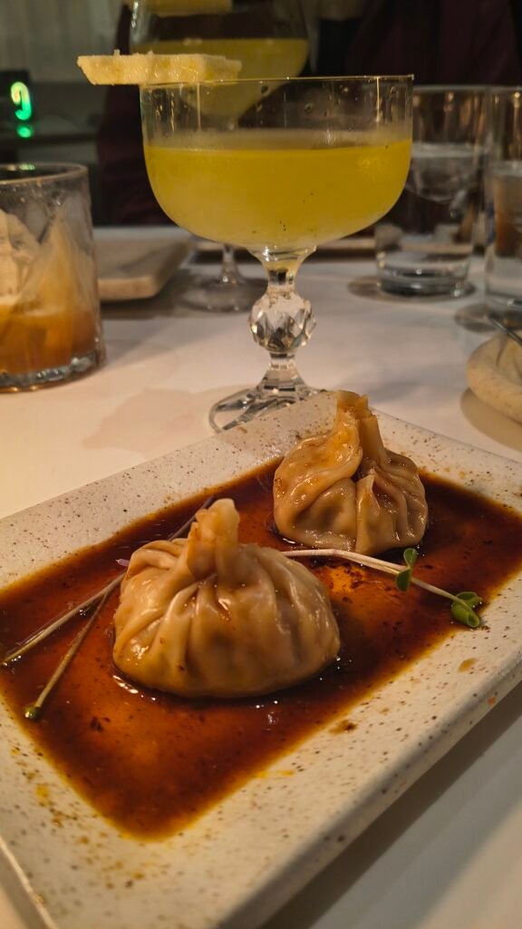 Um dos meus favoritos, também para beliscar, foi o Dumpling de Camarão (R$49,00), preparado no vapor, temperado com tucupi oriental, mostarda e brotos, finalizado com molho ponzu e chili oil. Delicioso!