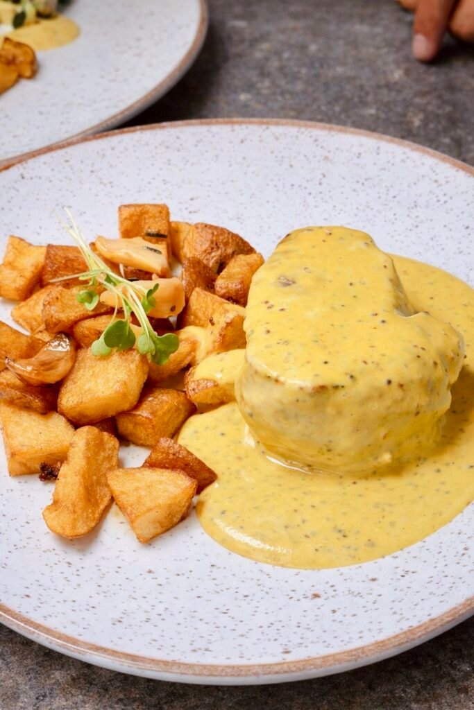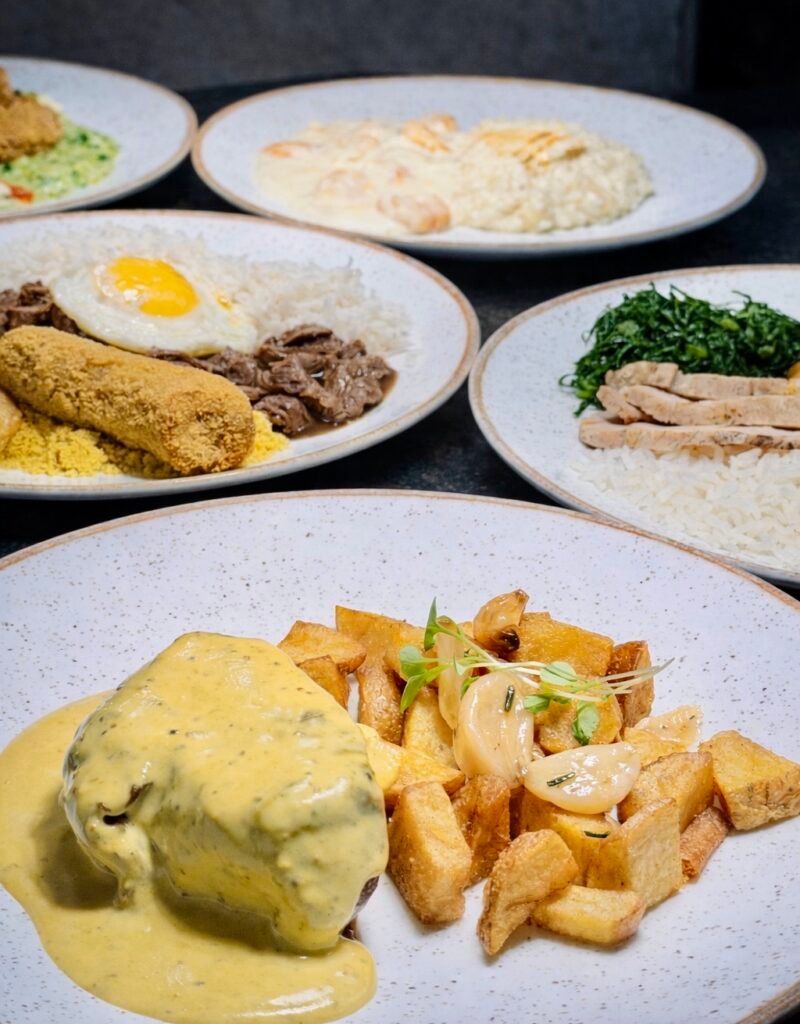 No menu, opções como Frango Cordon Bleu (Peito de frango empanado e dourado, recheado com queijo e presunto, servido com arroz cremoso de brócolis e toque final de manteiga e tomatinhos confit ), R$54,00; Brasileirinho Cantucci (Lombinho suíno grelhado, acompanhado de arroz branco soltinho, tutu de feijão cremoso, couve salteada no alho e banana à milanesa), R$49,00; Camarão ao Brie (Camarões salteados e envolvidos em creme aveludado de queijo brie, servidos com arroz cremoso de abacaxi e toque delicado de pimenta-rosa), R$54,00; Peixe Branco ao Molho de Tomates Frescos (Filé de peixe grelhado com molho de tomates frescos, champignon e alcaparras, servido com arroz de brócolis e batatinhas sauté), R$54,00; Steak às Três Mostardas (Bombom de alcatra grelhado, macio e suculento, servido com molho de três mostardas e batatinhas sauté), R$59,00; Rondelli de Ricota, Figo e Nozes (Massa fresca feita na casa recheada com ricota cremosa, figos e nozes, gratinada no forno com molho bechamel e parmesão), R$54,00; Picadinho Clássico da Casa (Tiras de filé ao molho roti, acompanhadas de arroz branco, farofa da casa e pastel de queijo), R$54,00. Com adicional de ovo frito por R$5,00. Todos os pratos incluem Saladinha da Casa como cortesia.