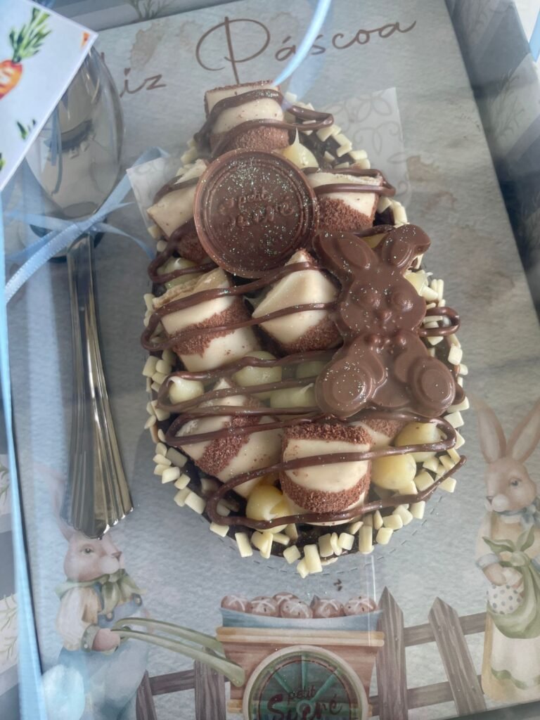 Destaque também para as Esferas, sobremesa com casca de chocolate, que vem com bolo, brigadeiro e decoração variada. Com mais de 2 quilos, elas são ideais para quem vai receber a família em casa ou para levar para o almoço de amigos, já que servem bem várias pessoas. Elas vêm nos sabores: pistache, figos e amêndoas, cocada crocante, brownie com doce de leite e coelhinho dragé.