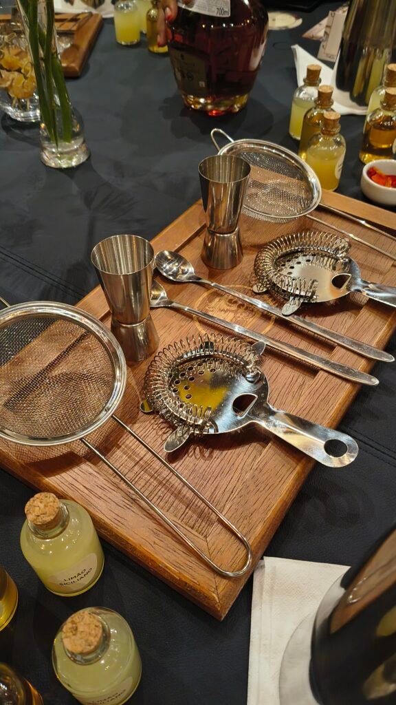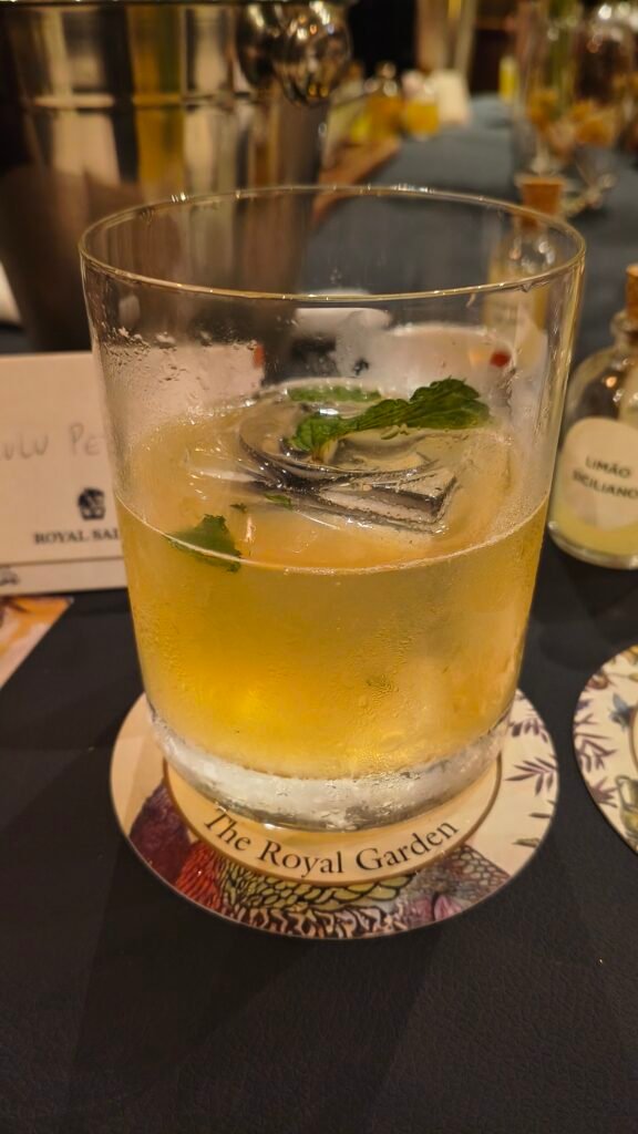 O rótulo escolhido foi o Royal Salute 21 Years The Blended Grains e as receitas foram executadas a partir de belíssimas e organizadas estações de trabalho onde ingredientes como limão siciliano, hortelã, flores comestíveis e xaropes de flor de sabugueiro, mel e gengibre, se transformaram em coquetéis aromáticos, refrescantes e deliciosos.