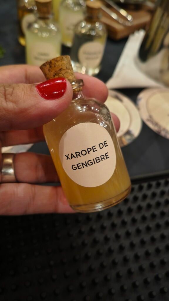 The Royal Garden, com um toque de hortelã, foi meu favorito, sendo a mistura perfeita de acidez com o maltado do whisky; The Crown Frizz, com toque de efervescência da club soda e dulçor do xarope de sabugueiro e, por fim, um clássico imbatível: Grain Penicillin, com mel, gengibre, limão e uma bala de gengibre caramelizado. Todos ficaram belos e saborosos.