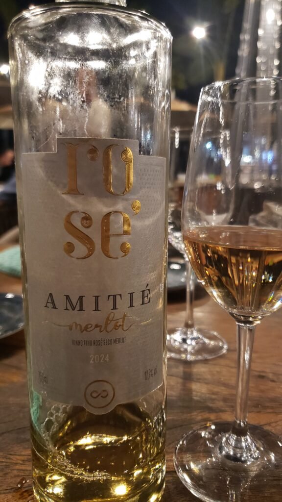 Impressionante como o pastel de camarão (85,00/porção) com alho poró, páprica, salsinha e toque de azeite de Dendê, servidos com aioli de Moqueca casou com o rosé de merlot da Amitié, que também segurou super bem a deliciosa Pescare Croccante (R$ 80,00), em iscas de Pirarucú silvestre de manejo sustentável, empanadas com ovo orgânico, farinha Panko e castanha do Brasil.