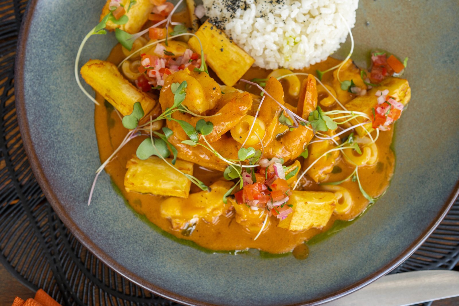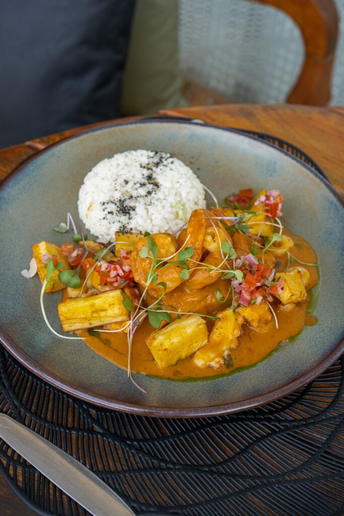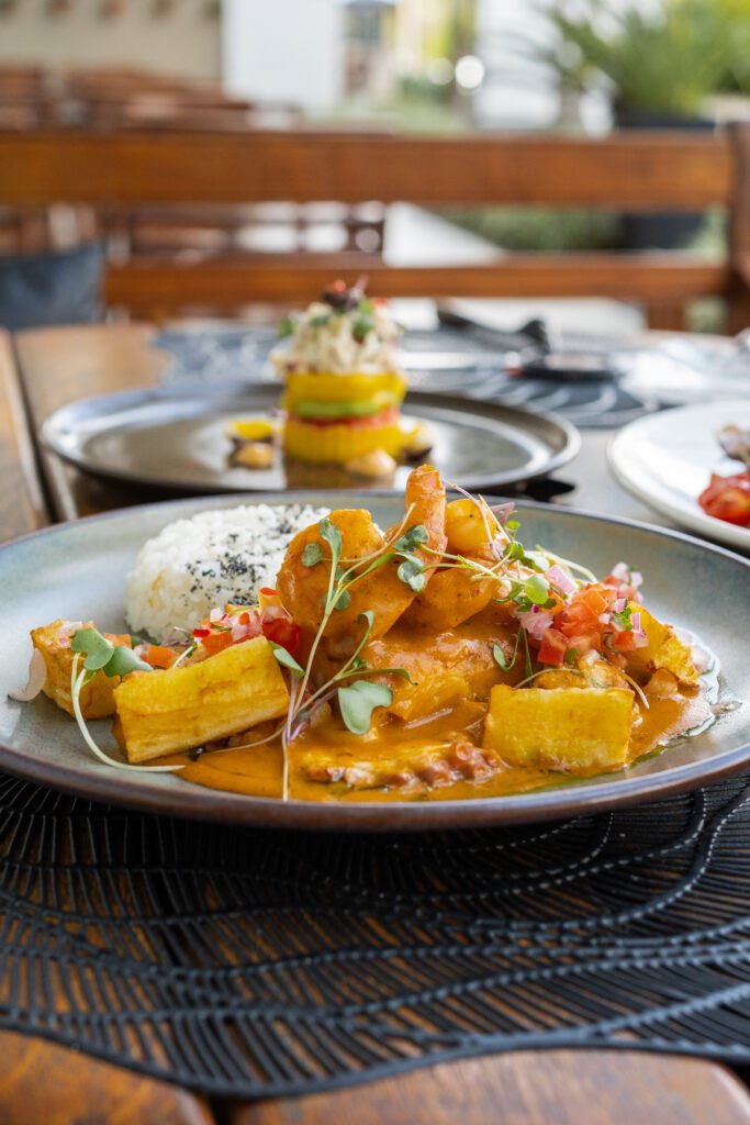 Como pratos principais, o restaurante oferece o Tacu Tacu Criollo — receita típica que une arroz, feijão e bacon, cobertos pelo clássico lomo saltado — e o Pescado a lo Macho, composto por peixe grelhado com molho de camarão, lula e polvo cremoso, acompanhado de mandioca frita e arroz branco.