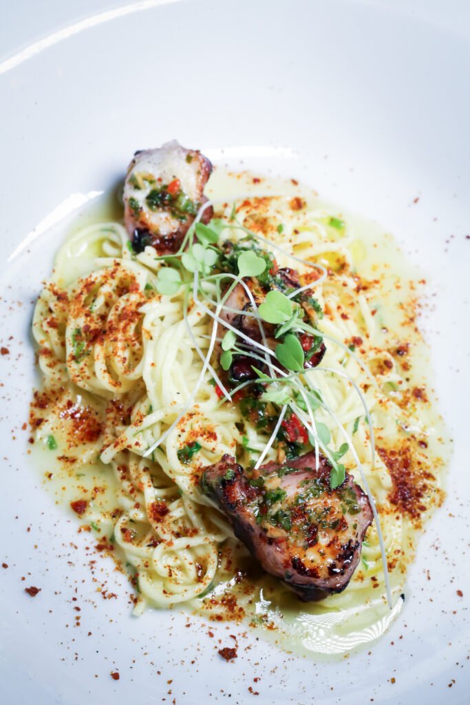 São sete as criações do chef Marco Espinoza para a ocasião: para a entrada, batata recheada de polvo, cogumelos e peperoni, guacamole de polvo com crocante de fubá e pastel de polvo com alcachofra e aioli de pimenta de cheiro. Dentre os pratos principais, arroz negro de polvo, polvo baby com purê de batatas e manjericão, capelini com polvo e limão e polvo espanhol com bacon, espuma de queijo e alho e farofa de amendoim.