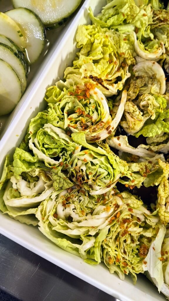 É uma experiência coletiva, agradável seja com crianças ou com amigos. Tudo ali parece funcionar. O segredo é regular a potência do fogo e manter a grelha “lubrificada” com uma camada fina de gordura. Aos poucos, os cortes finíssimos de fraldinha, maminha, picanha, contrafilé, além de bacon e até língua bovina (sim, eu amo!) começam a soltar sucos que ajudam o brócolis, a acelga e os cogumelos a cozinharem levemente.