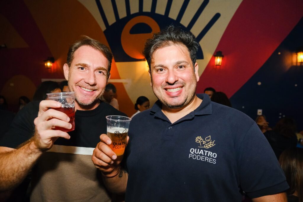 Entre as novidades, um lançamento que roubou a cena — e o paladar. Foi apresentada a cerveja exclusiva criada pela Quatro Poderes para o evento: uma Weissbier com adição de pitaya, de coloração rosa vibrante e aroma delicadamente frutado, que conquistou todos os presentes já no primeiro gole. A degustação ainda foi acompanhada por drinks autorais da casa, pizzas Alfredos e petiscos orientais do Yakiton, que harmonizaram perfeitamente com a proposta descontraída da noite.