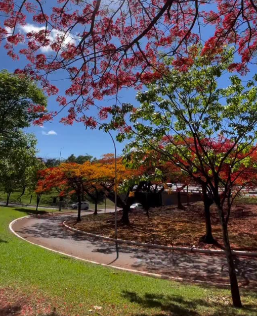Essas árvores, conhecidas por sua copa ampla e flores intensamente coloridas, são um dos destaques da arborização da capital e encantam moradores e visitantes a cada primavera.