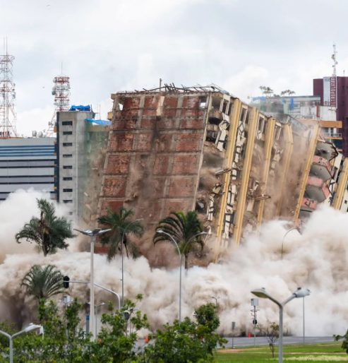 A queda foi rápida e precisa, seguida por uma nuvem de poeira que tomou conta da região. Apesar da intensidade, não houve registro de incidentes, graças ao forte esquema de segurança montado para proteger a população e os profissionais envolvidos.