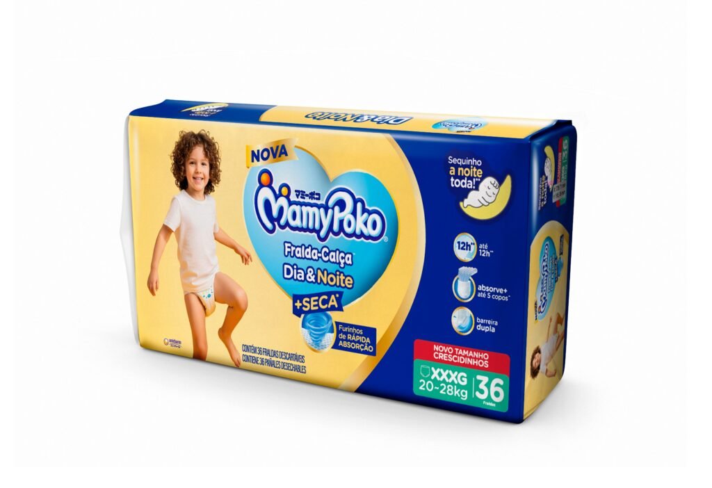 A MamyPoko acaba de ampliar sua linha Dia&Noite com o lançamento da fralda-calça descartável XXXG, desenvolvida especialmente para crianças de até 28 kg. Com essa novidade, a marca oferece todos os diferenciais de qualidade da linha como cobertura contínua por até 12 horas, permitindo que até as crianças maiores tenham uma noite tranquila e segura por mais tempo.