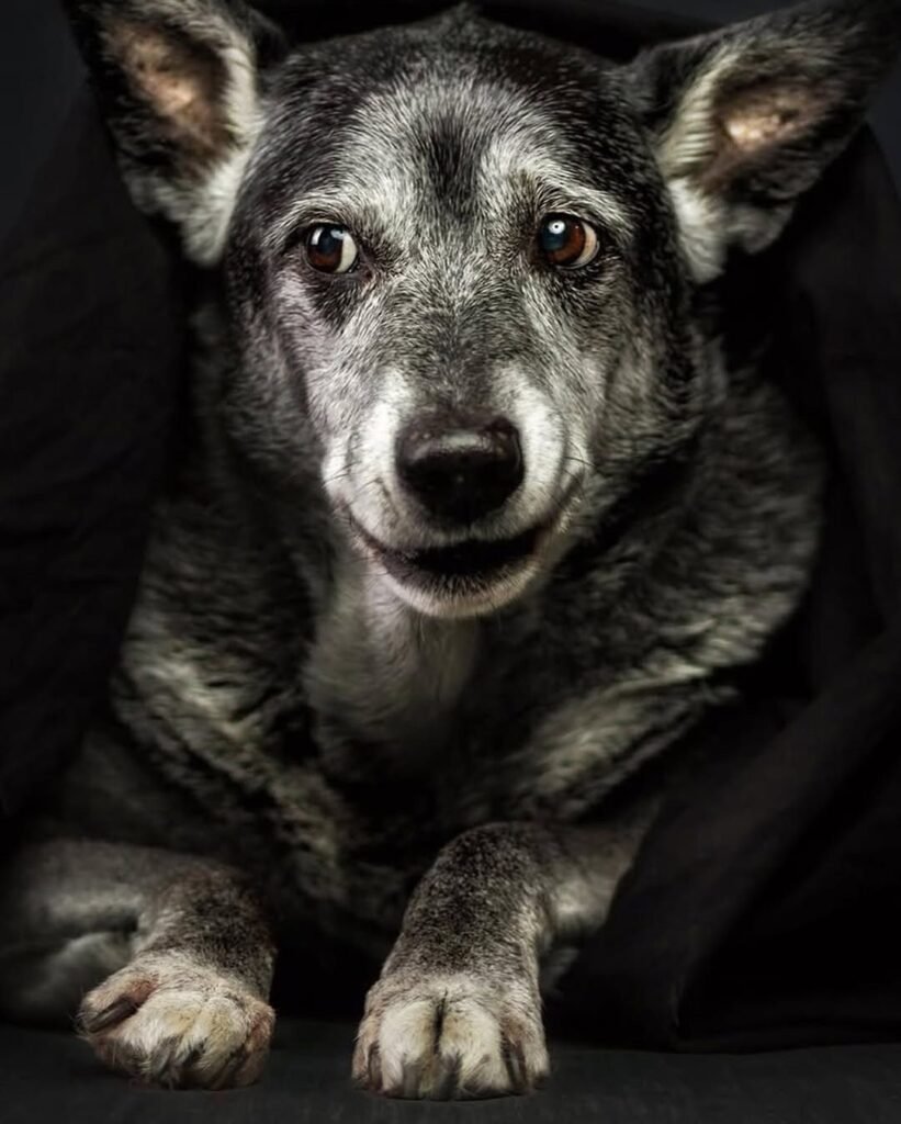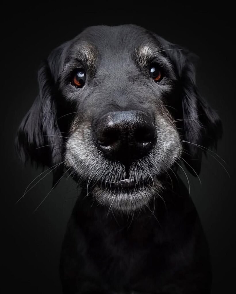 À medida que os cães envelhecem, suas feições ganham marcas do tempo — olhos mais serenos, pelagem com fios brancos e olhares que carregam histórias de uma vida inteira ao lado de seus tutores. Vieler conseguiu capturar o brilho da maturidade canina em retratos que fogem dos padrões convencionais, exaltando expressões naturais, momentos de curiosidade e a beleza única da experiência vivida.