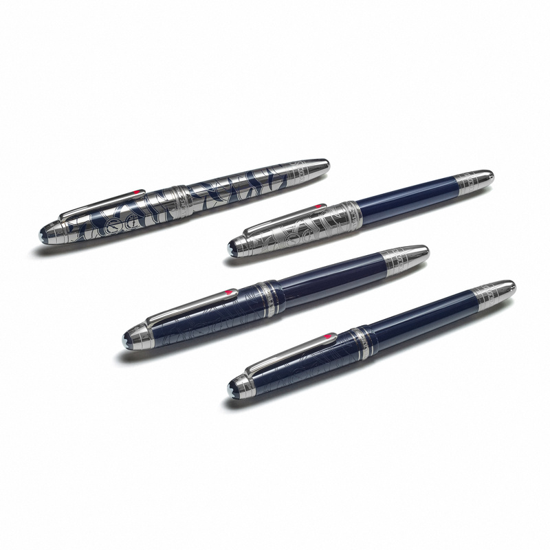 - Meisterstück A volta ao mundo em 80 dias Resina Classique & LeGrand: Corpo e tampa em resina azul escura, com detalhes de fumaça e um cartucho de trem a laser. Disponível em caneta-tinteiro, rollerball e esferográfica.