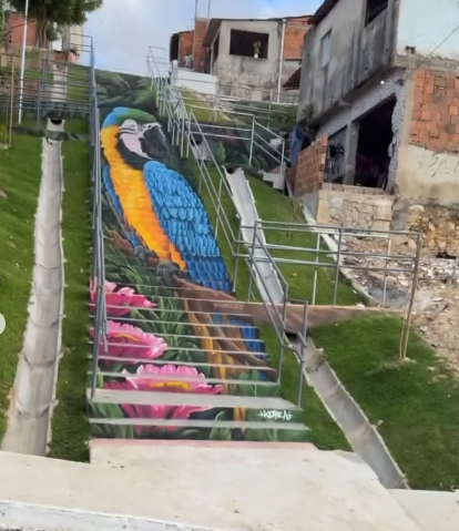 No bairro Japãozinho, em Aracaju (SE), o artista Korea JPZ transformou a escadaria do Recanto da Jaqueira em uma verdadeira obra-prima: uma arara gigante, pintada com cores vibrantes e riqueza de detalhes, que vem encantando moradores e internautas.