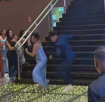 Durante uma formatura de ensino médio em Formosa, no Entorno do Distrito Federal, mãe e filho roubaram a cena com uma apresentação cheia de energia.
