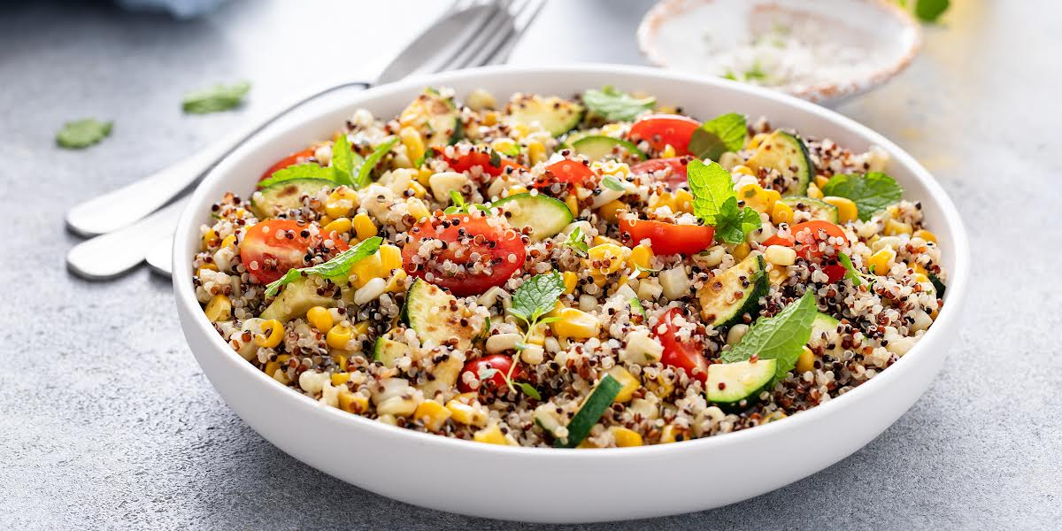 Cozinhe a quinoa conforme instruções da embalagem. Aqueça o azeite e refogue o alho e a cebola. Acrescente o bacalhau desfiado, o tomate e o pimentão. Refogue bem até que o bacalhau fique cozido. Acrescente a quinoa cozida, o queijo parmesão e o vinho branco. Acerte o sal e sirva em seguida.