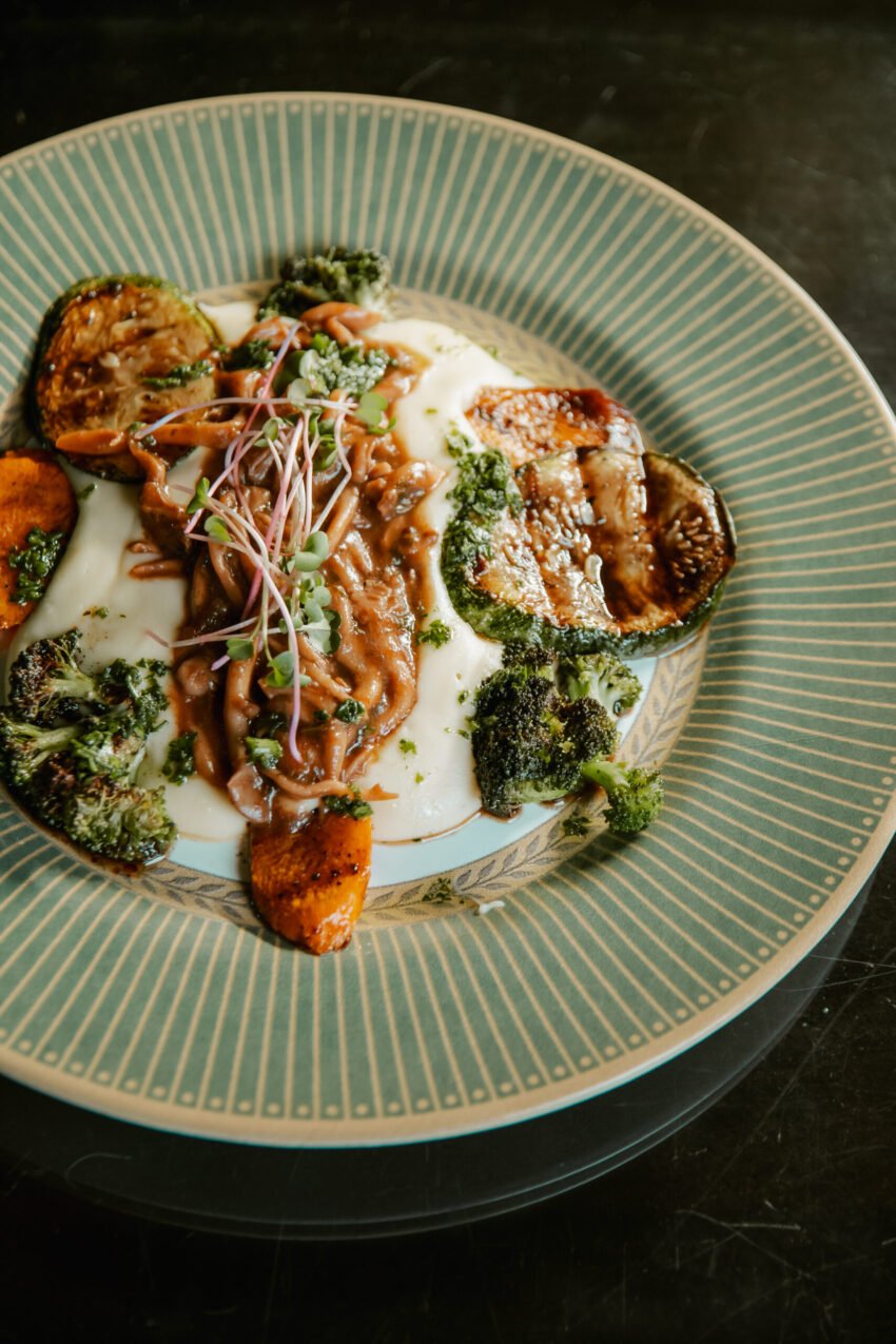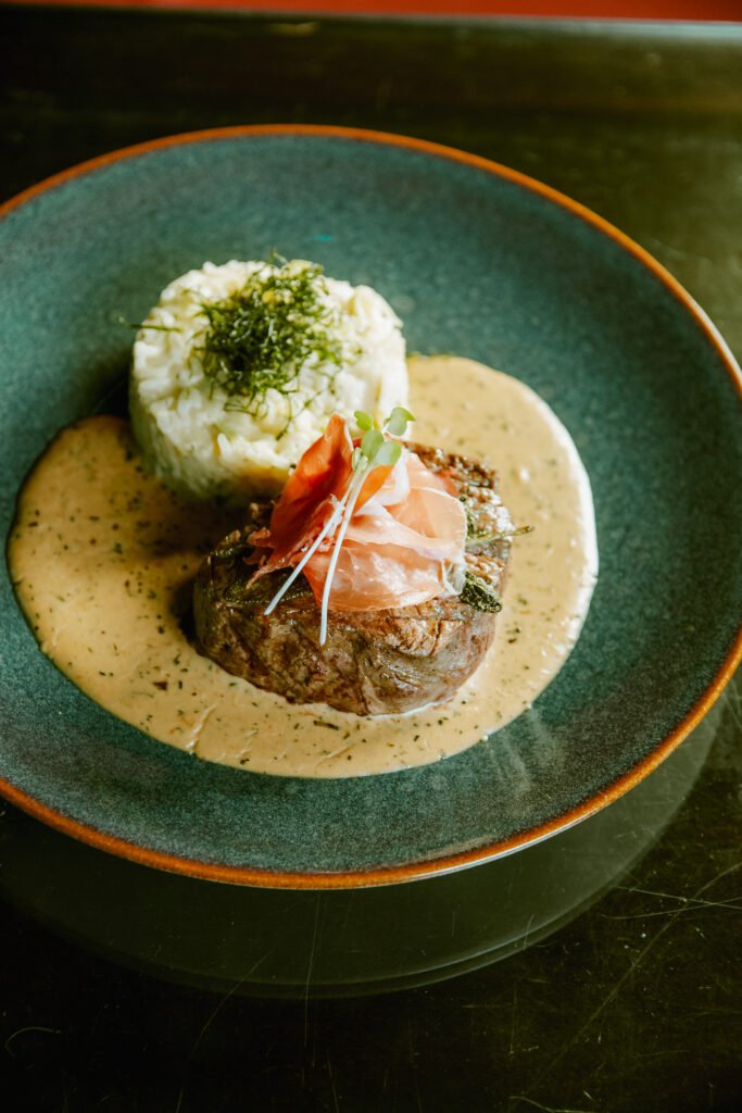 No almoço, o cardápio oferece três pratos principais. Ronaldo Fenômeno – Jogo de Corpo, que traz cubos de filé-mignon ao molho de rapadura com pimenta-dedo-de-moça, acompanhados de arroz crocante de queijo coalho. A Valenciana Universal é uma paella mista de frutos do mar e frango, finalizada com azeite extravirgem e toque de limão siciliano. A opção Azzurra Vegetariana aposta em aligot de coco com cogumelos orgânicos frescos e legumes grelhados.