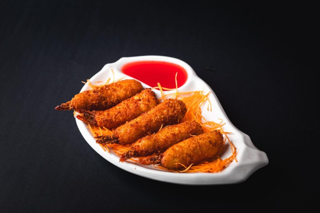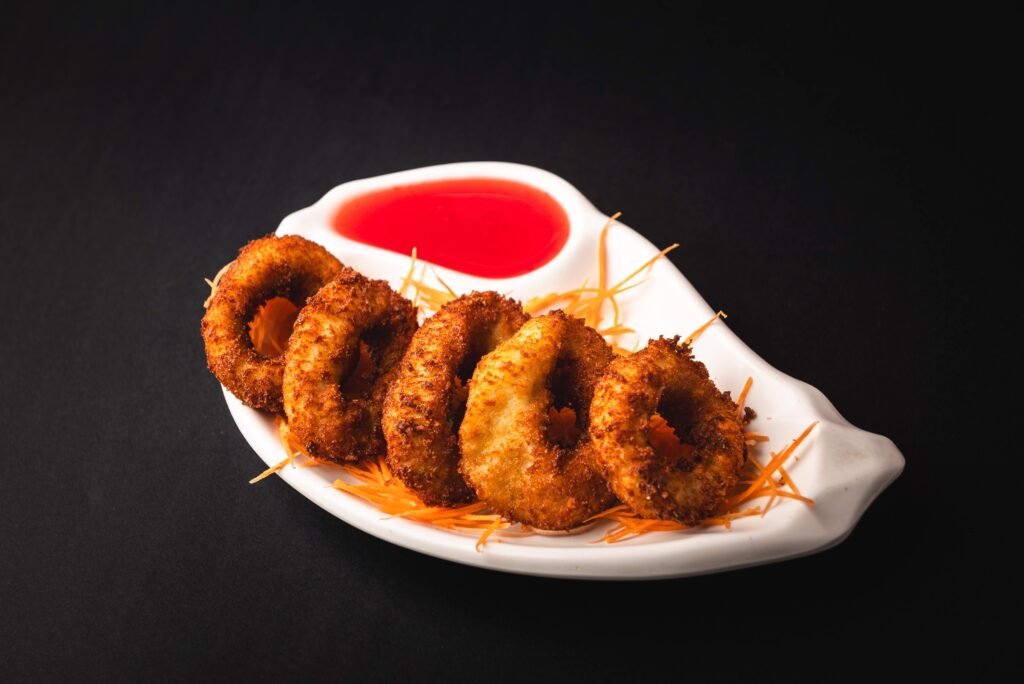 Os empanados também marcam presença, com alternativas como lula na farinha panko, tilápia à milanesa, camarão imperial e cebola recheada com cream cheese, equilibrando crocância e sabor.