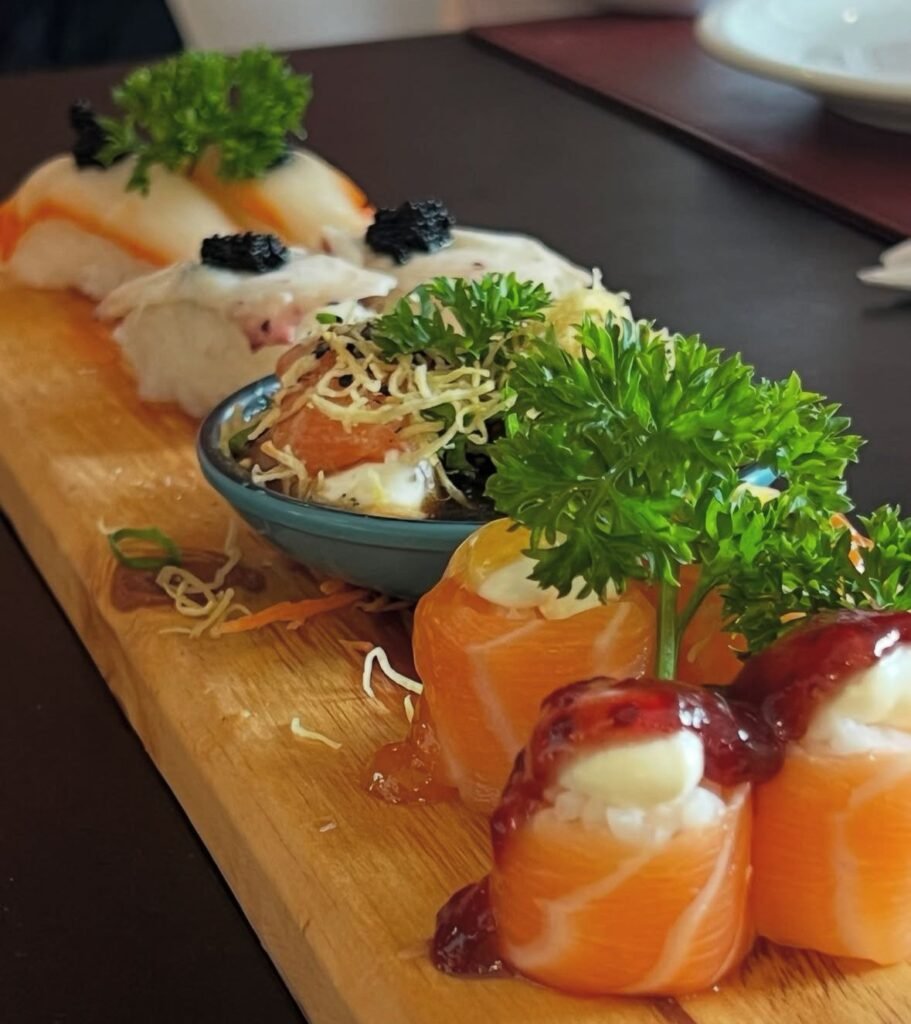 Para quem busca uma verdadeira imersão nos sabores orientais, o Rodízio Premium é a estrela do restaurante. Nele, os clientes têm acesso ao variado buffet e também a uma sequência de pratos servidos diretamente à mesa, tudo incluso no valor do rodízio. Entre os destaques estão o Bolinho de Peixe, Lula ao Alho e Óleo, além de Sashimis, Carpaccios, Ceviches, Temakis e Sushis Especiais. Há também grelhados como o Filé de Salmão com Teriyaki e o Filé de Anchova Negra, perfeitos para quem prefere pratos quentes.