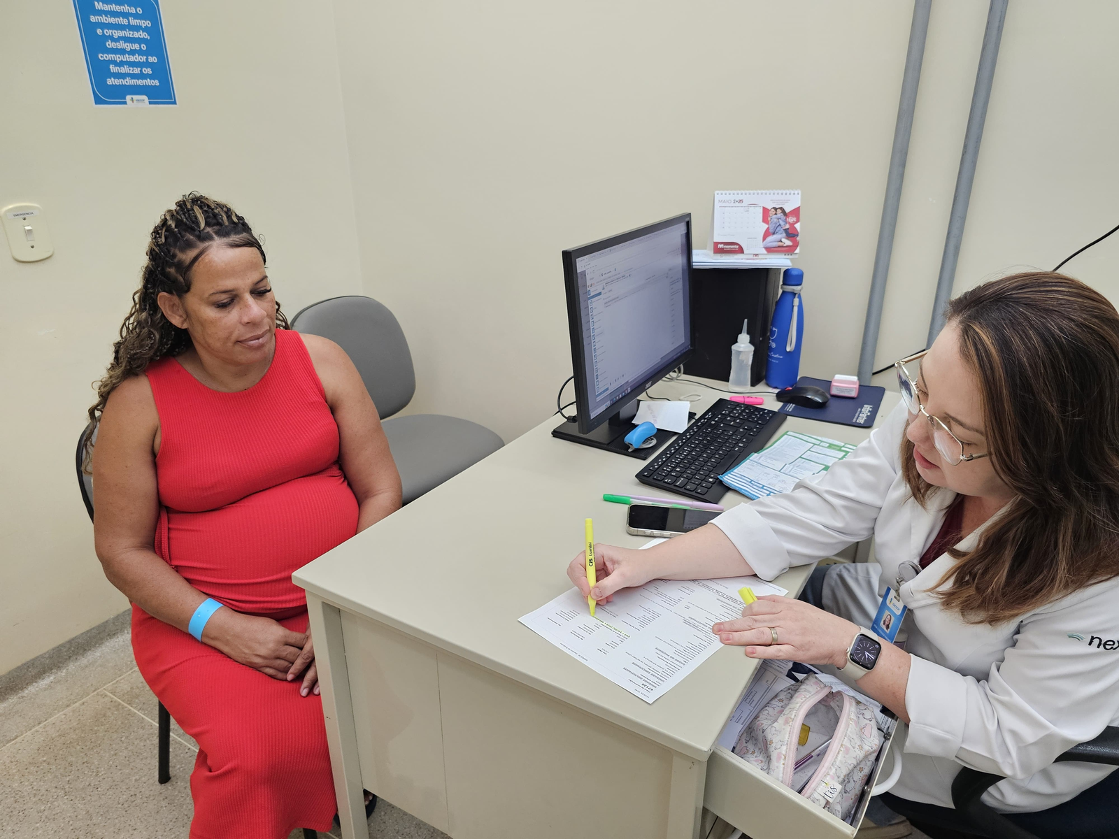 Raimunda Nonata da Conceição, 40 anos, está grávida de 31 semanas, esperando a pequena Geovana. Paciente de alto risco, ela faz o pré-natal no ambulatório do HRSM, sob os cuidados da médica Ana Carolina. Atualmente, segue uma suplementação com polivitamínico, vitamina D, sulfato ferroso e cálcio.