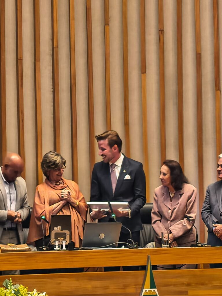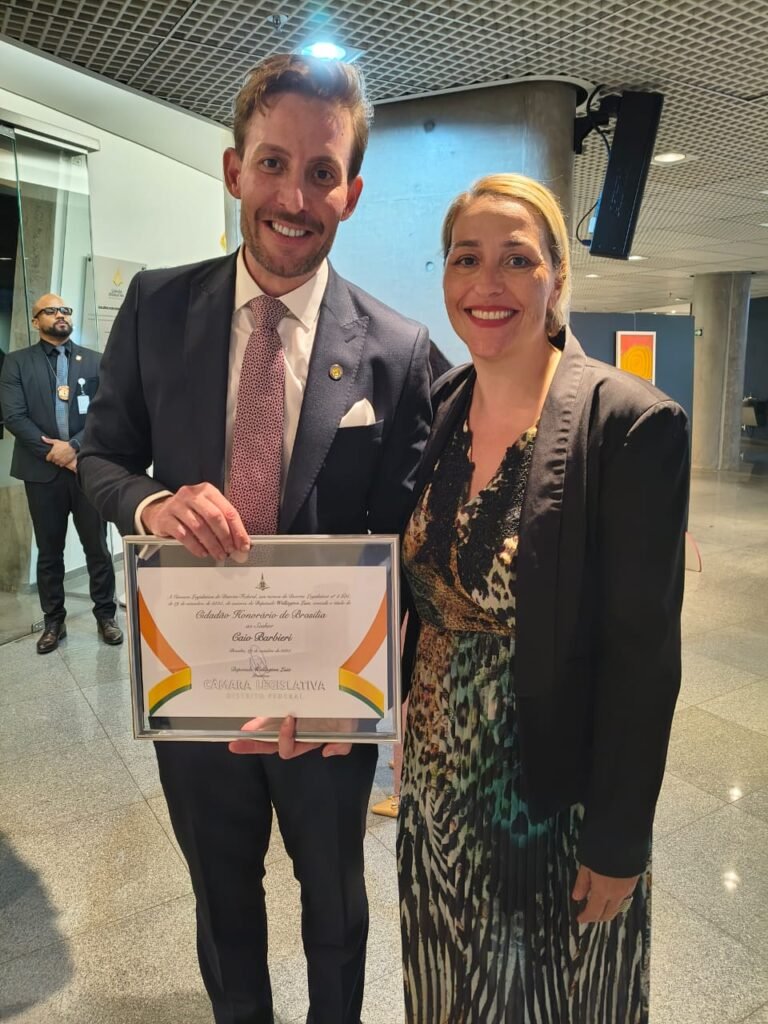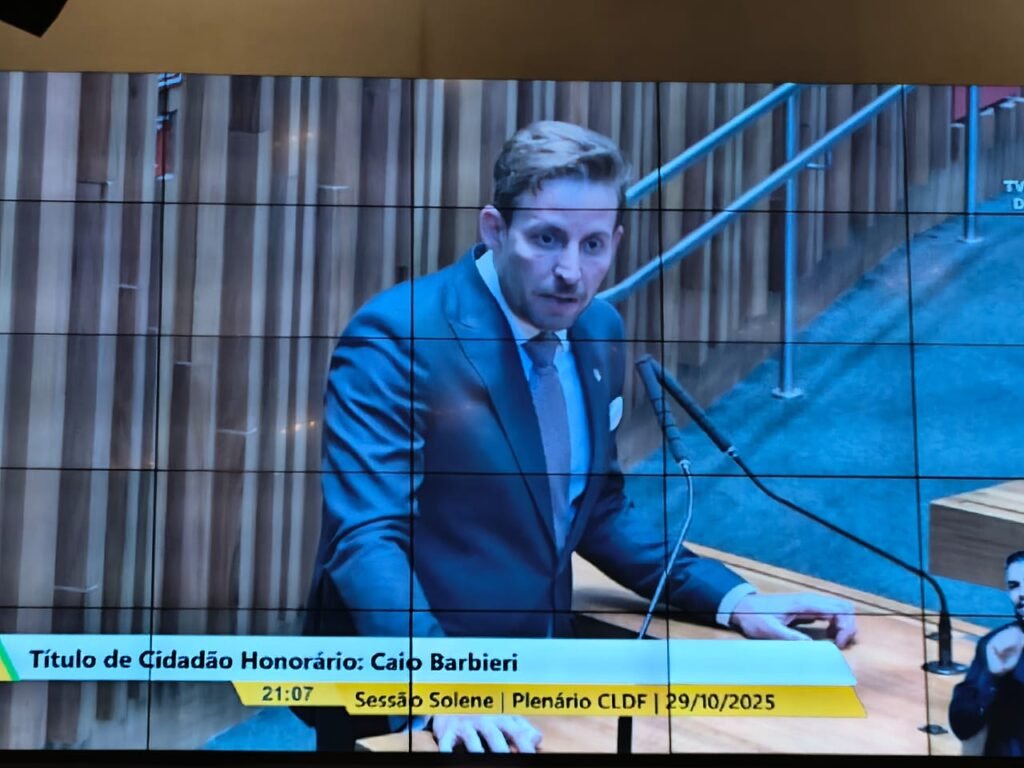 Em sessão solene na última quarta-feira (29), o jornalista Caio Barbieri recebeu o título de Cidadão Honorário de Brasília, por iniciativa do deputado Wellington Luiz (MDB), presidente da Câmara Legislativa do Distrito Federal.