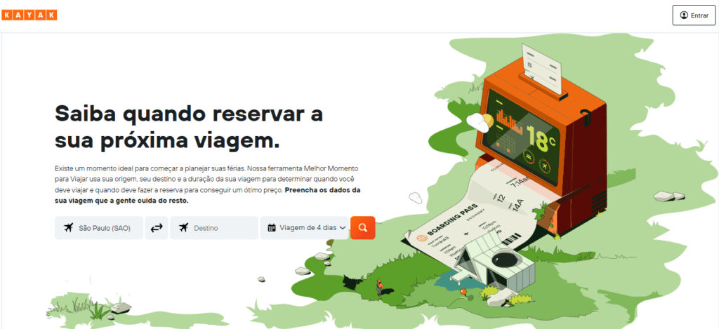 Destino escolhido, mas bateu a dúvida de quando ir? A ferramenta Melhor Momento para Viajar do KAYAK tem tudo para ser uma grande aliada na decisão. Baseada em bilhões de buscas realizadas no buscador, e em dados meteorológicos de terceiros, ela auxilia os viajantes a identificarem o mês mais indicado para viajar e o momento ideal para fazer a reserva para o destino pretendido.