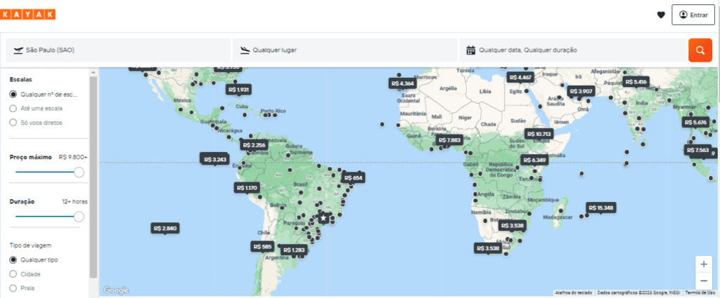 Quem optar por decidir o destino com base no orçamento tem na ferramentaExplore, do KAYAK, uma ótima alternativa, já que permite ao viajante filtrar opções dentro do mapa de acordo com o orçamento, data pretendida e tipo de viagem. A ferramenta ainda traz informações e curiosidades a respeito de cada destino, como os principais pontos turísticos da região, como se locomover e tendência de preços de passagens.